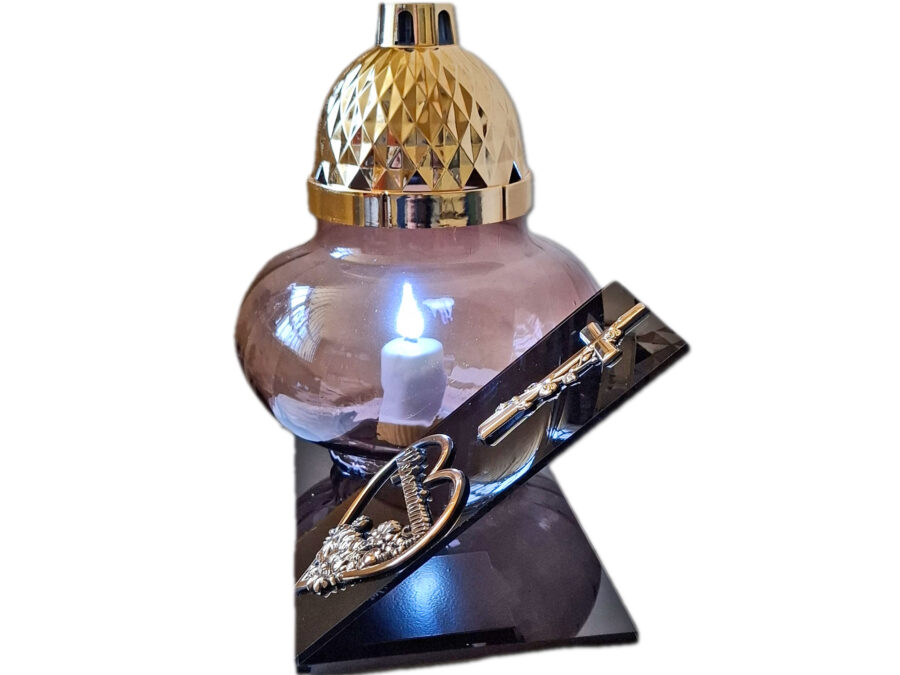 Znicz Koło RTN gładki czarny BABCIA+świeca led