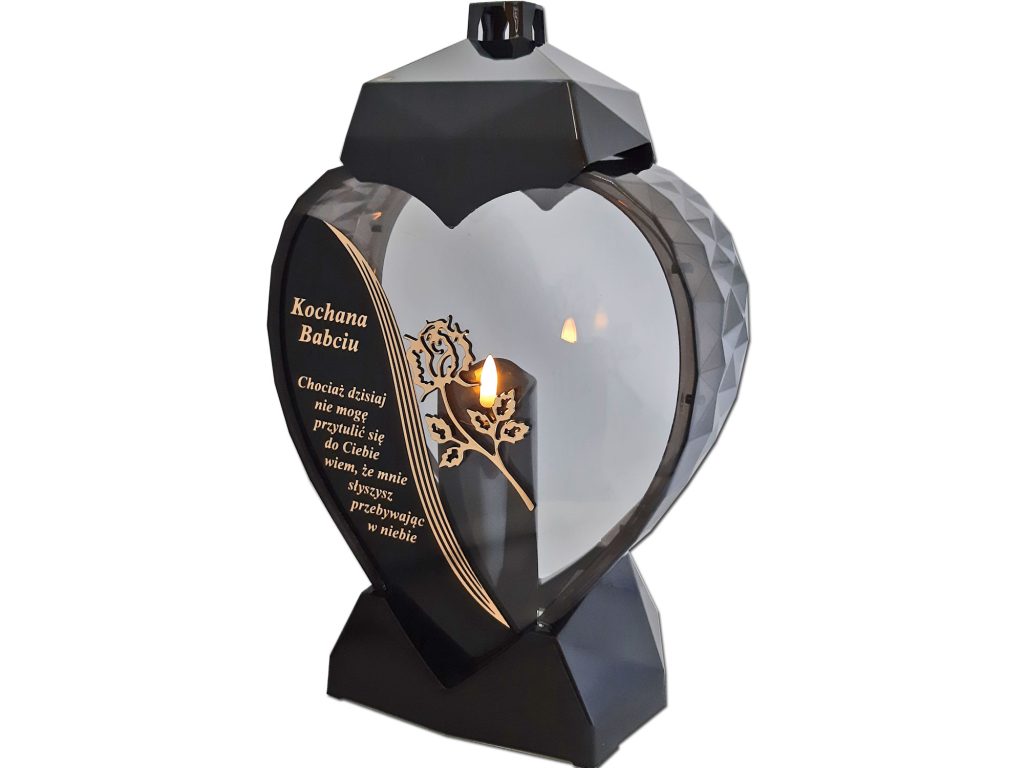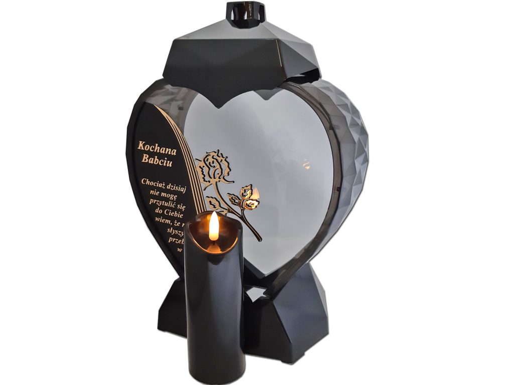BABCIA BABCI ZNICZ SERCE D CZARNY RÓŻA SENTENCJA ZŁOTO+ŚWIECA LED CZARNA
