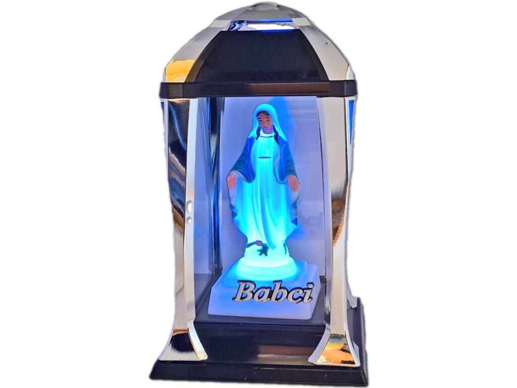 BABCIA znicz Kaplica KPL srebro+figurka led