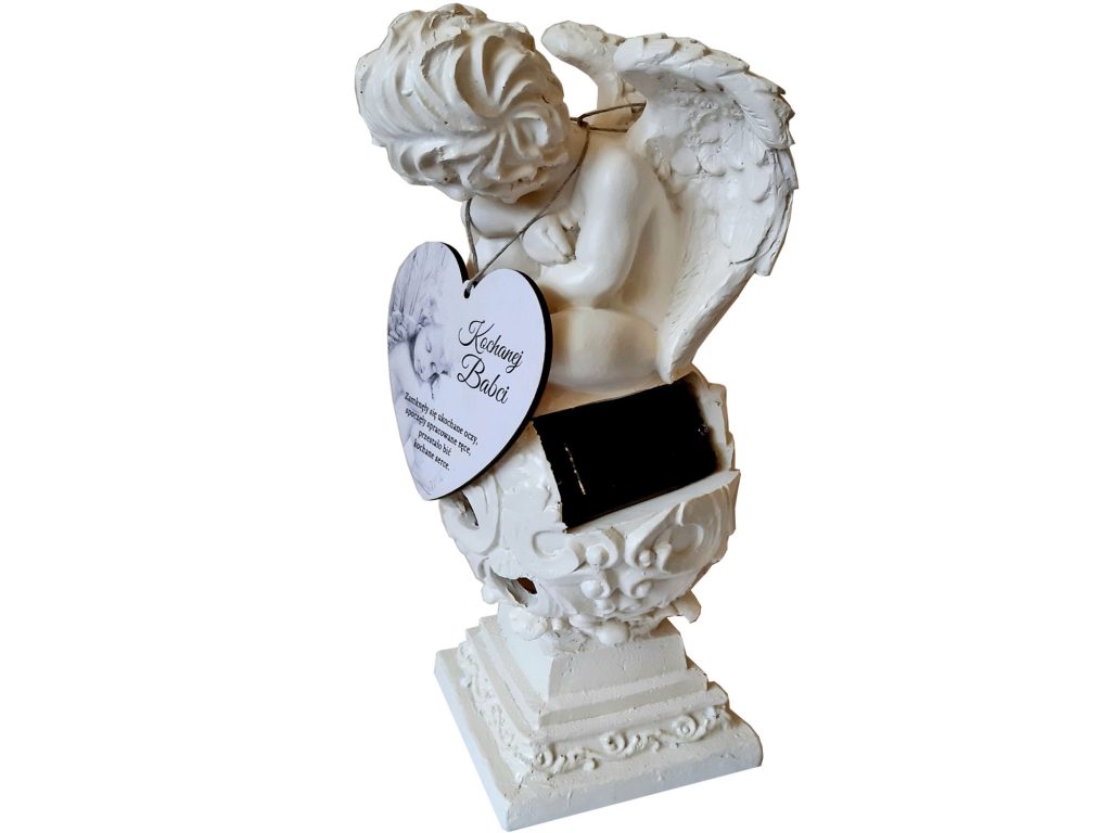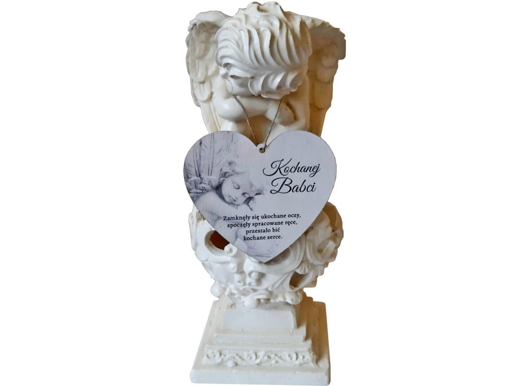 Aniołek w zestawie posiada drewniane serduszko z sentencją i dedykacją KOCHANEJ BABCI.