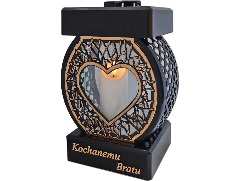 Znicz BRAT Koło RTN Serce rama złoto+świeca led biała