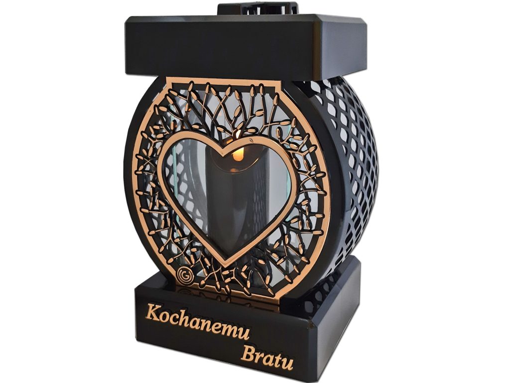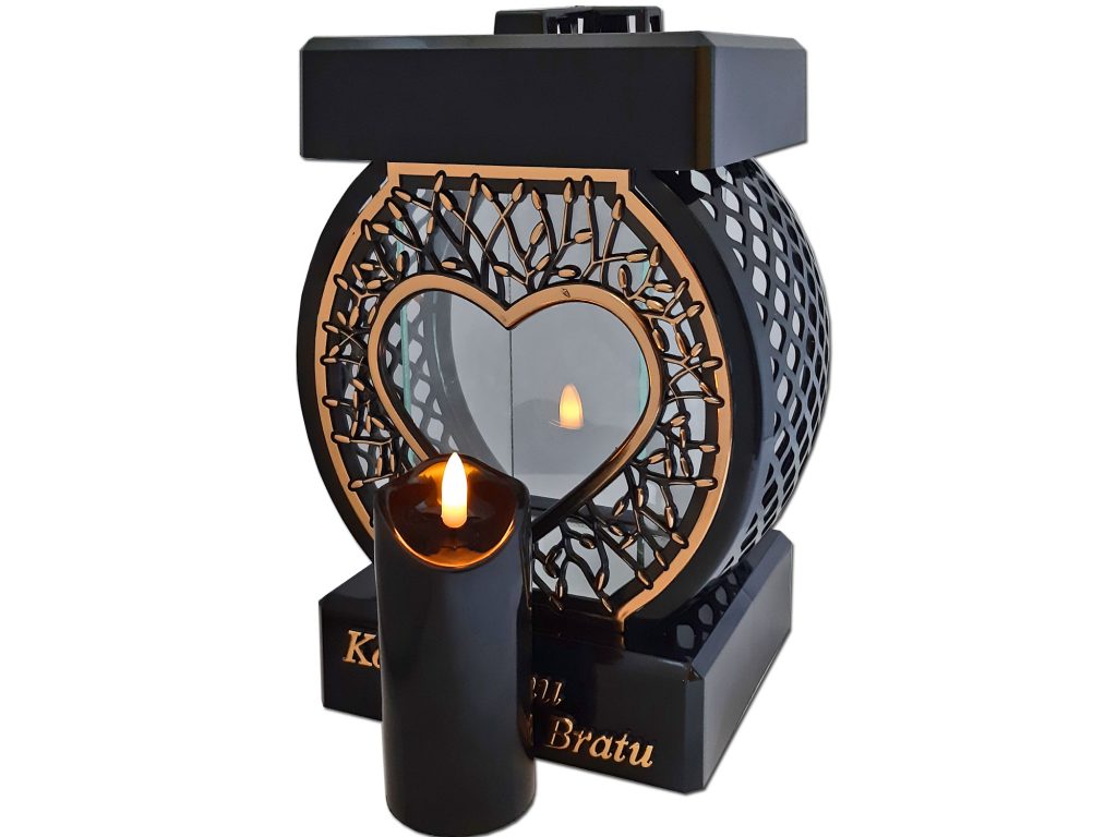 Znicz BRAT Koło RTN Serce rama złoto+świeca led czarna