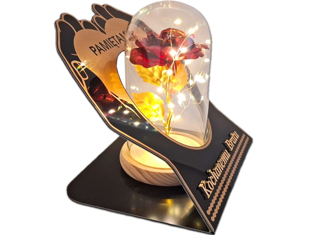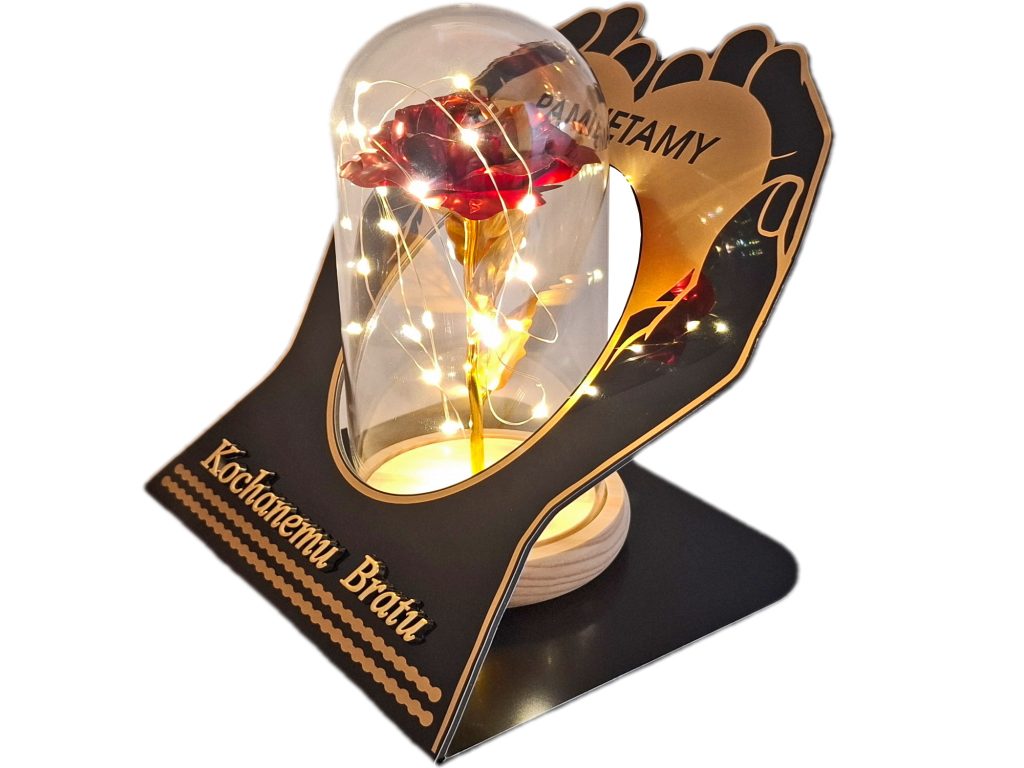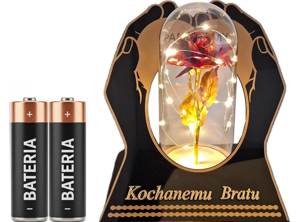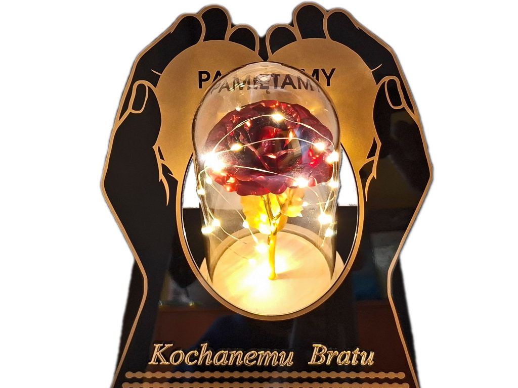 BRAT znicz dłonie róża czerwona + lampki led z bateriami