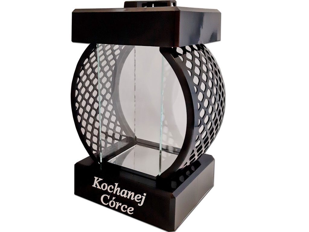 - w przedniej części znicza ,dedykacja KOCHANEJ CÓRCE w kolorze srebrnym
