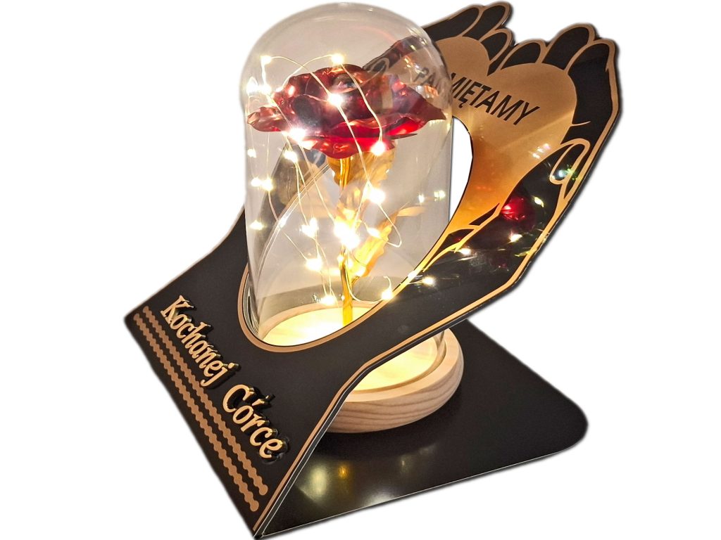 CÓRKA znicz dłonie róża czerwona + lampki led z bateriami