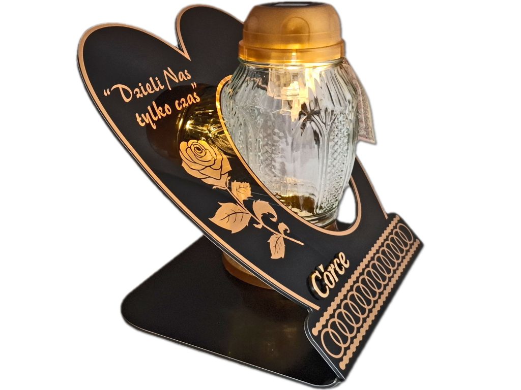 - kolor znicza: szkło przezroczyste,pokrywa i podstawa(złoto)