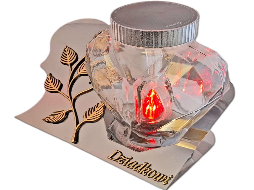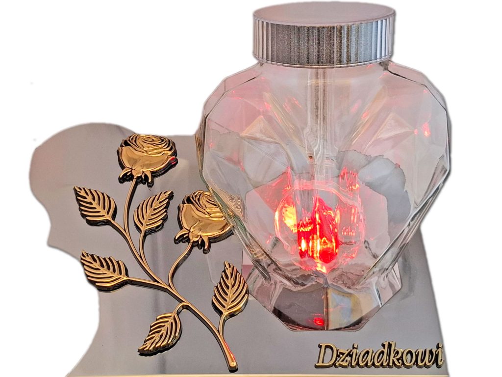 - Znicz stoi na metalowej podstawie,jest cały szklany w formie serca