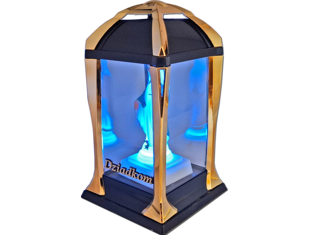 DZIADKOM DZIADKI ZNICZ LAMPION LATARNIA NA GRÓB KPL ZŁOTO+FIGURKA LED