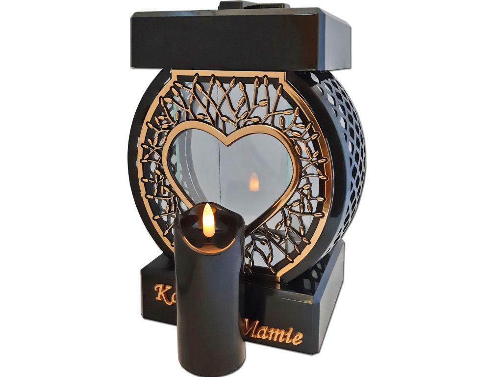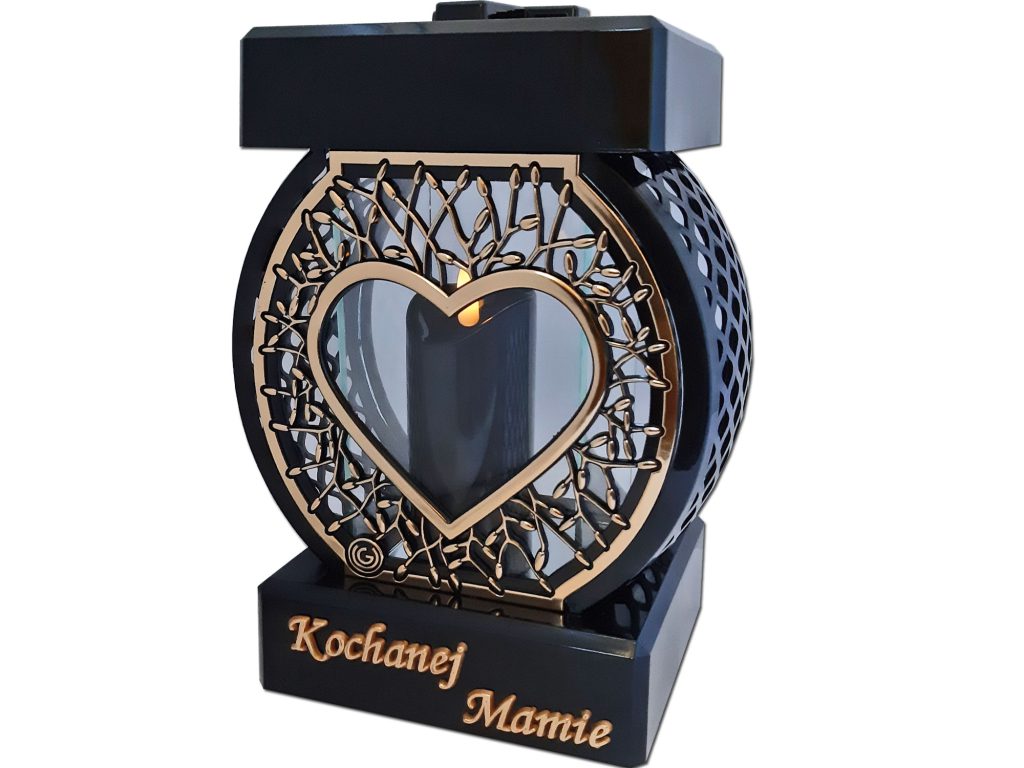 Znicz MAMA Koło RTN Serce rama złoto+świeca led czarna