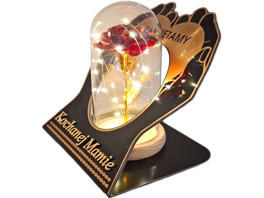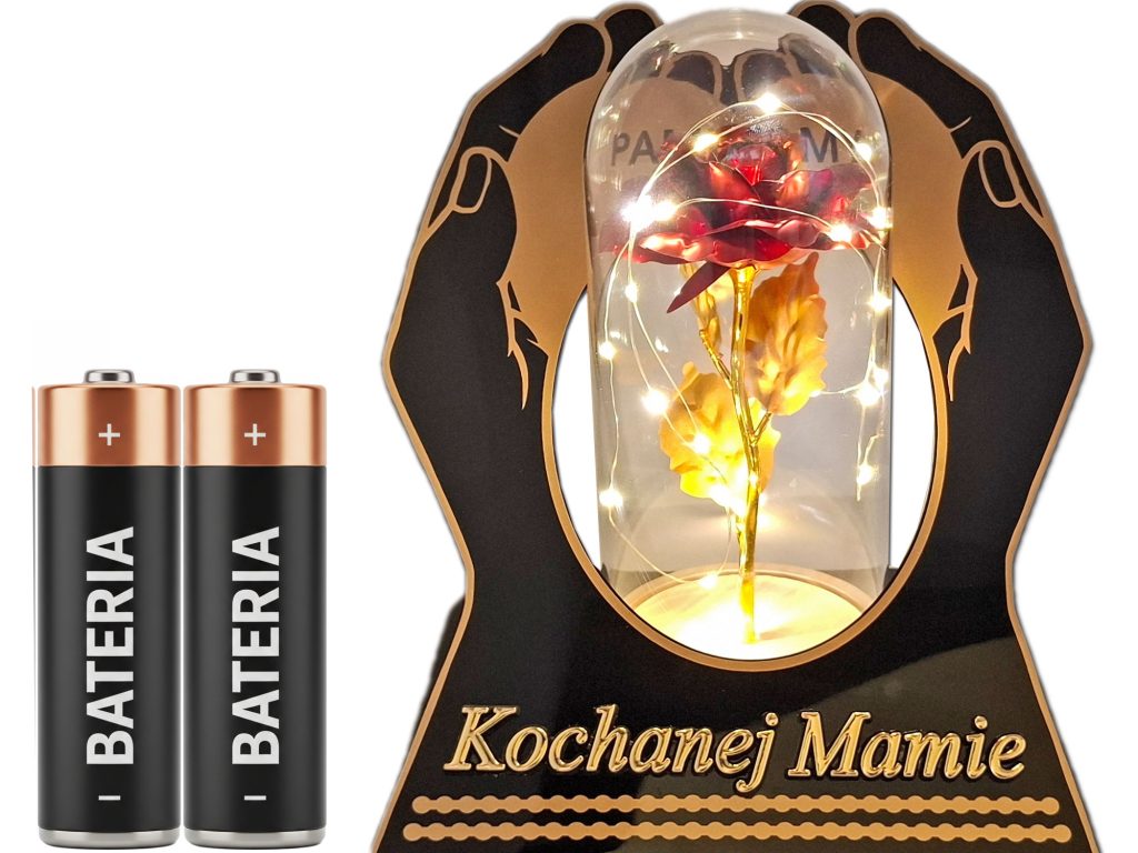 MAMA znicz dłonie róża czerwona + lampki led z bateriami