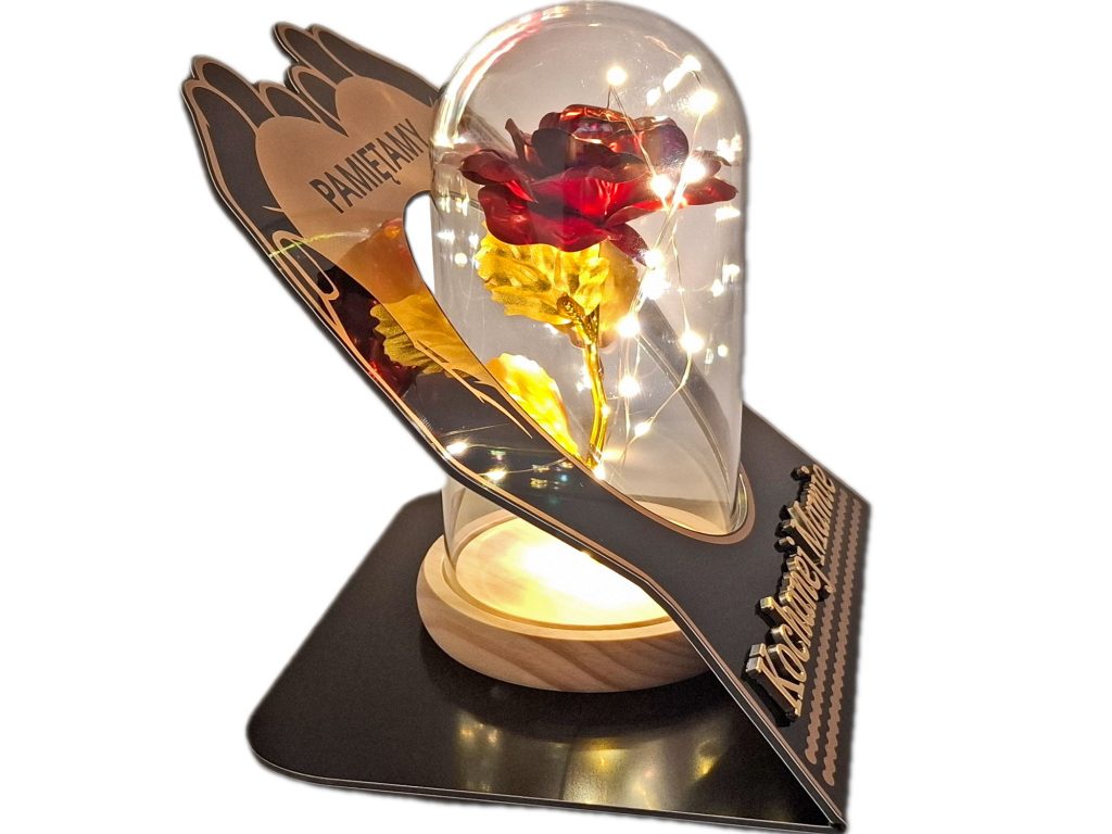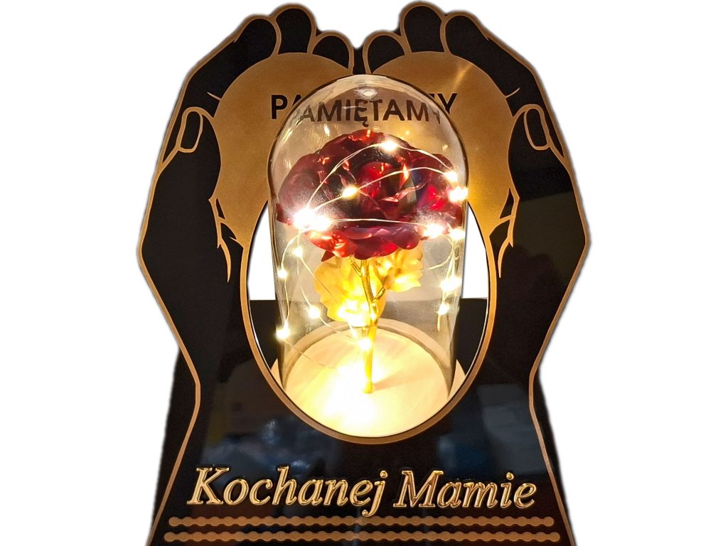 MAMA MAMIE ZNICZ LAMPION NA GRÓB SKOS DŁONIE RÓŻA CZERWONA+LEDY