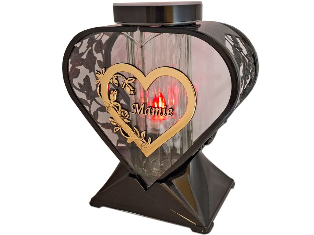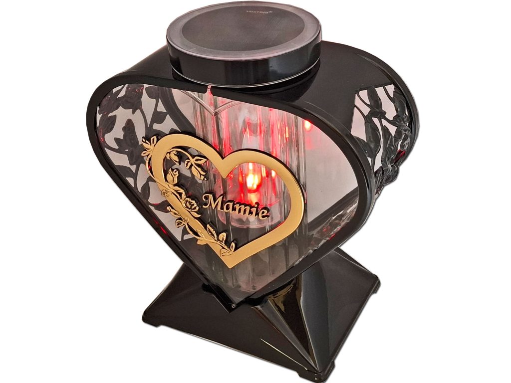 MAMA MAMIE ZNICZ LAMPION SERCE RÓŻA ZŁOTO NA GRÓB SOLARNY FOTOWOLTAICZNY