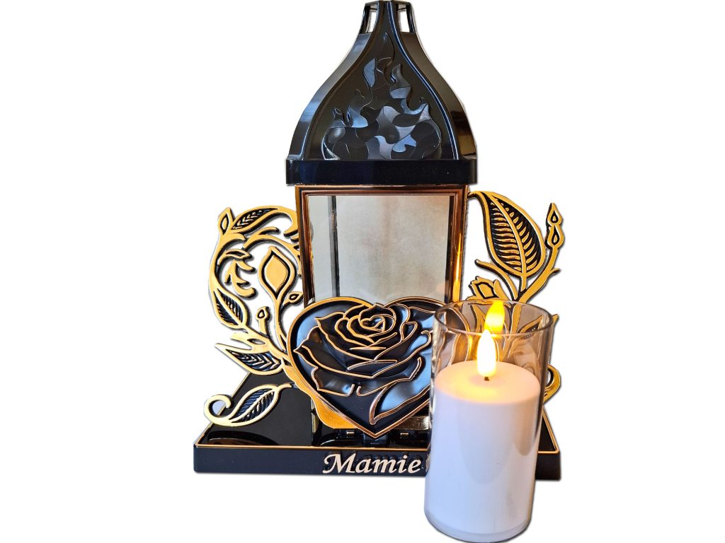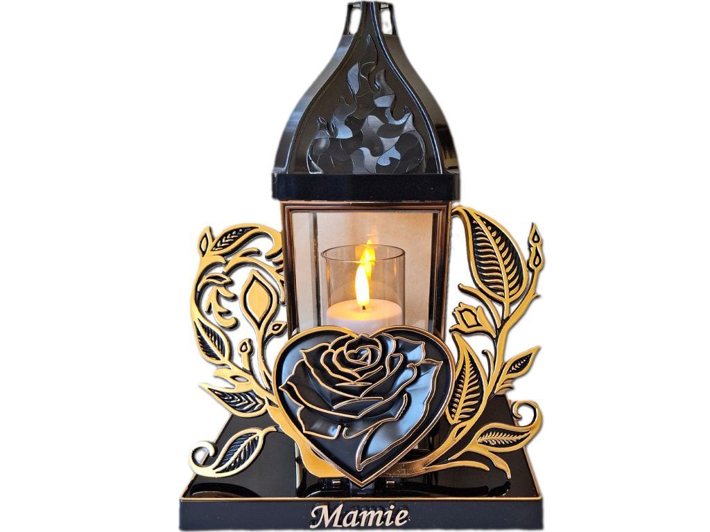 Mama znicz barok serce złoto +świeca led z bateriami