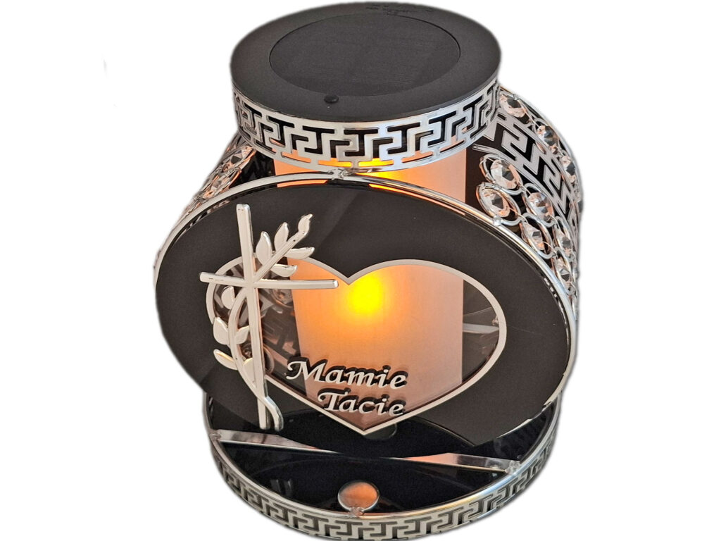 MAMA TATA znicz Solarny Vip koło srebrne-białe kryształki
