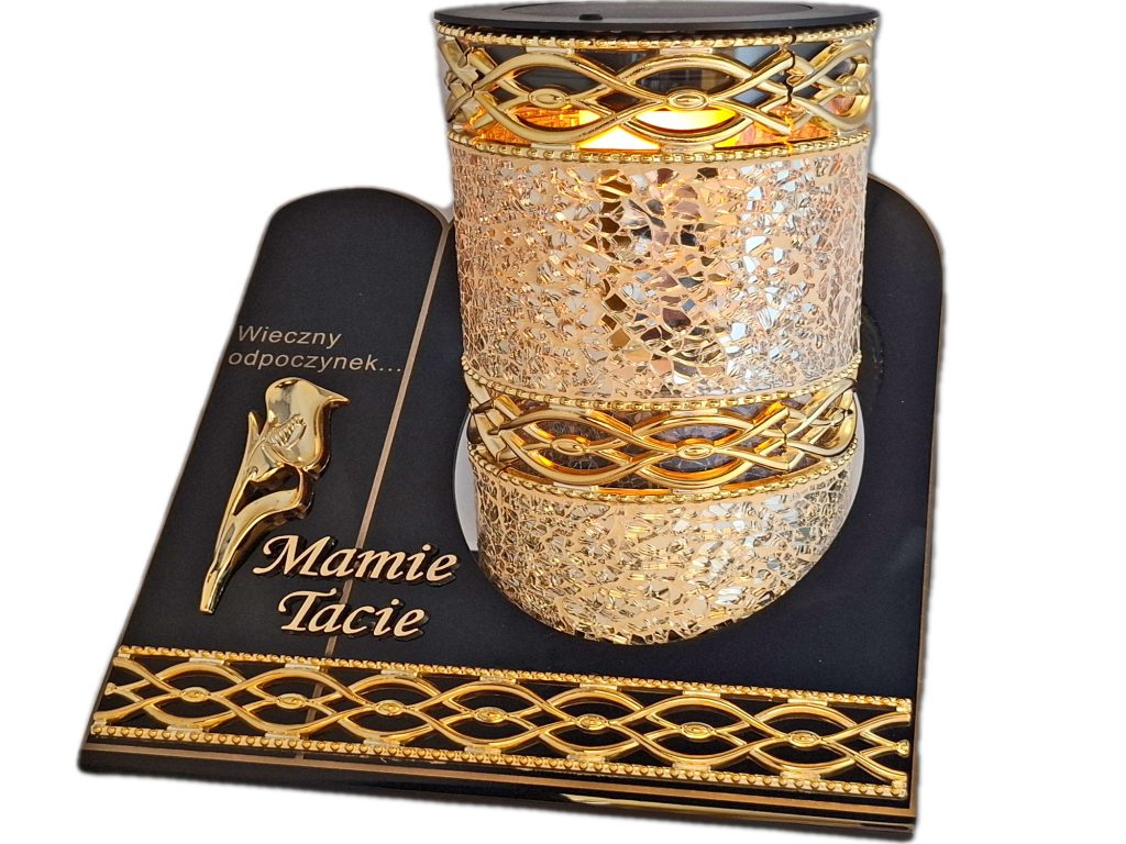 • kolor znicza: obudowa(złoto lustrzane),podstawa(czarna)
