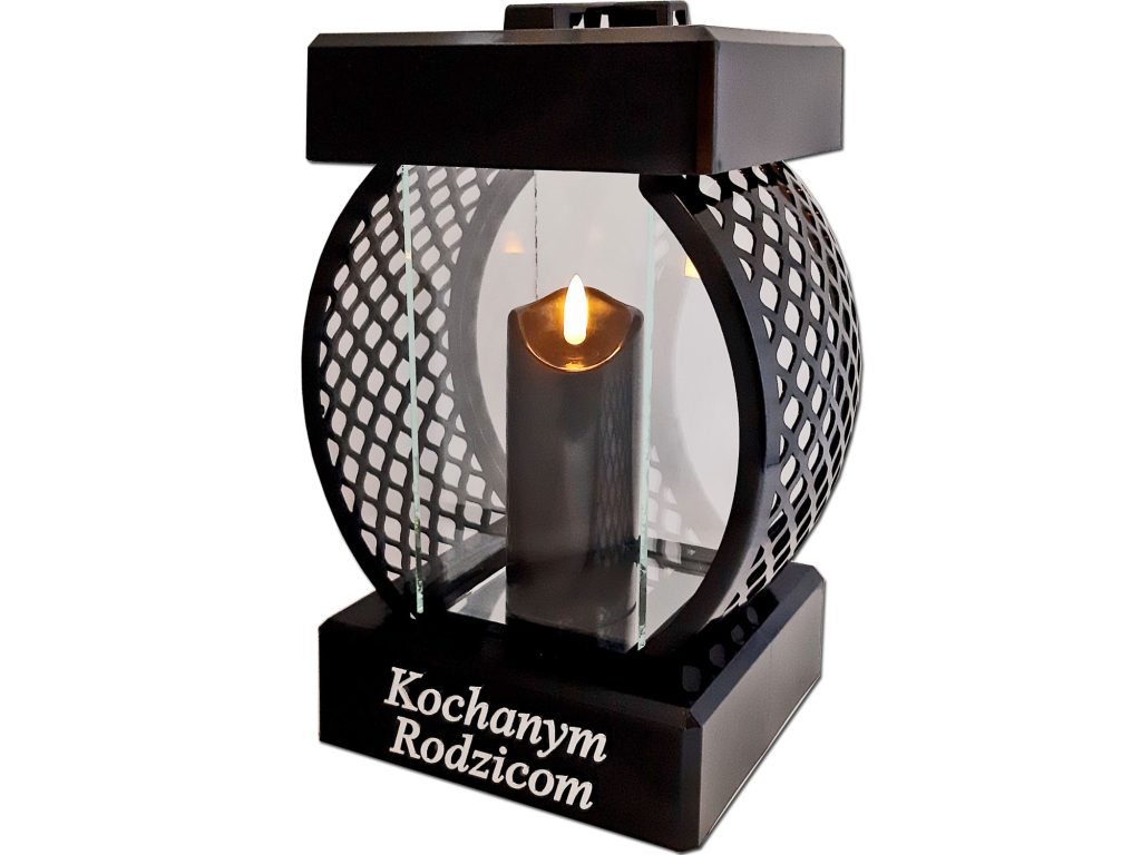 RODZICE RODZICOM SR ZNICZ LAMPION KOŁO RTN GŁADKI CZARNY+ŚWIECA LED CZARNA