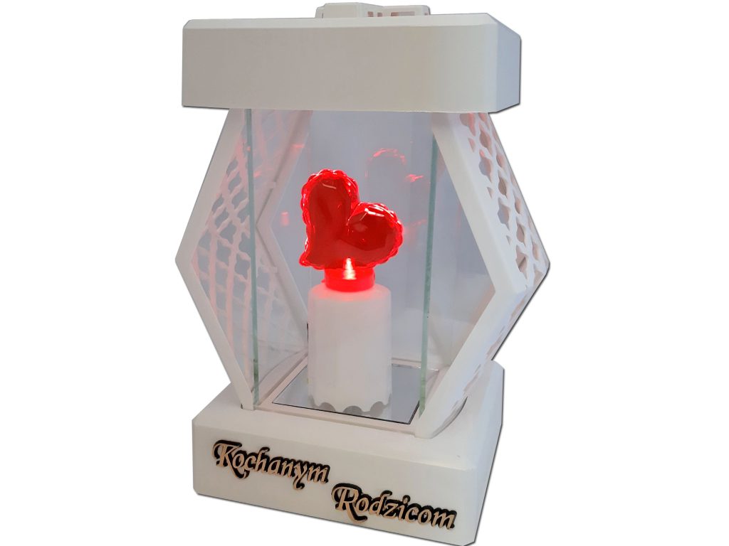 RODZICE RODZICOM ZNICZ LAMPION NA GRÓB DMT KARO GŁADKI BIAŁY+SERCE LED Z BAT