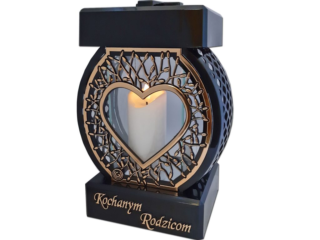 RODZICE RODZICOM ZNICZ LAMPION NA GRÓB KOŁO RTN SERCE RAMA ZŁOTO+ŚWIECA LED BIAŁA