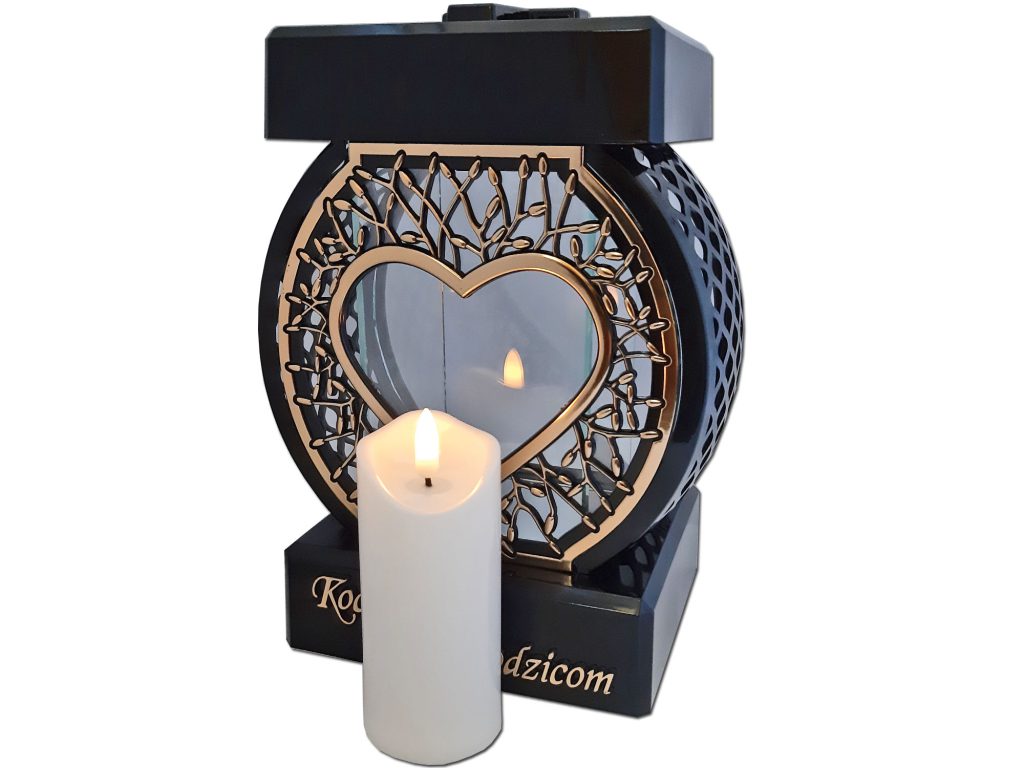 Znicz RODZICE Koło RTN Serce rama złoto+świeca led biała