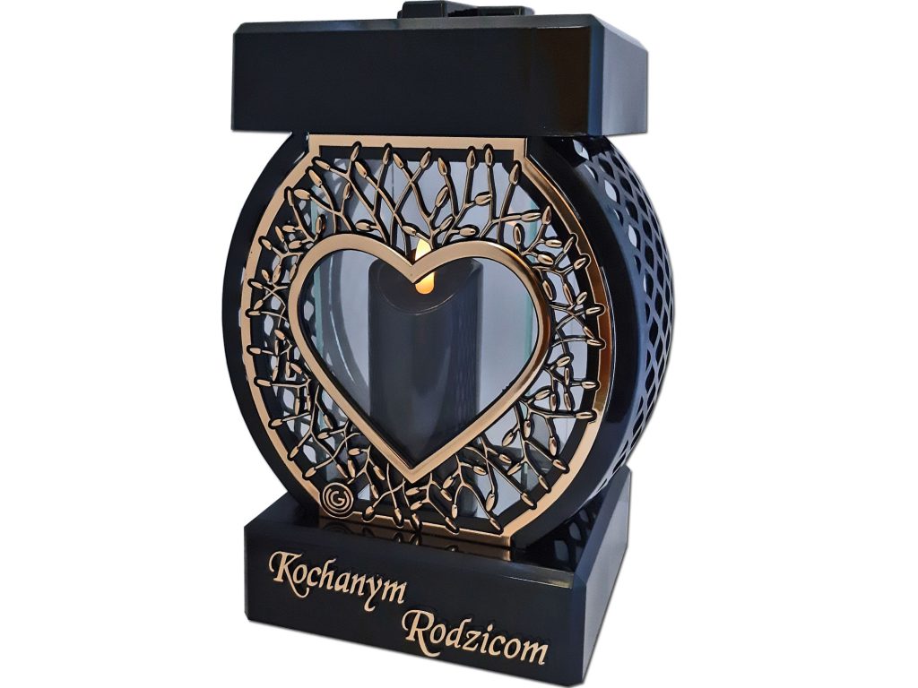 Znicz RODZICE Koło RTN Serce rama złoto+świeca led czarna