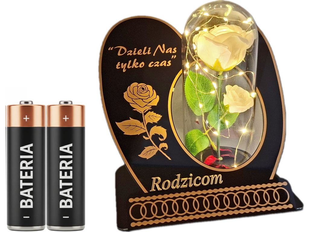 RODZICE znicz róża biała+ lampki led z bateriami