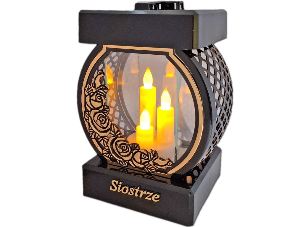 Znicz SIOSTRA Koło RTN róża rama złoto+świecznik led