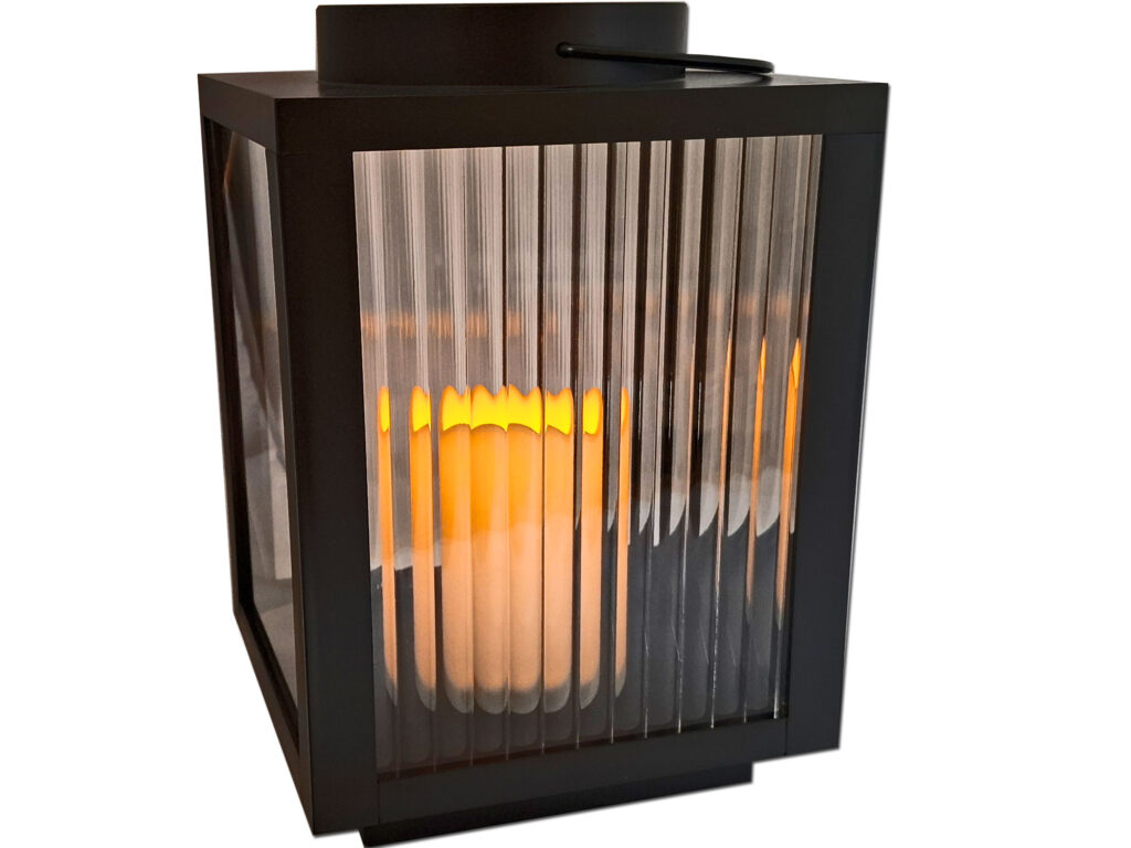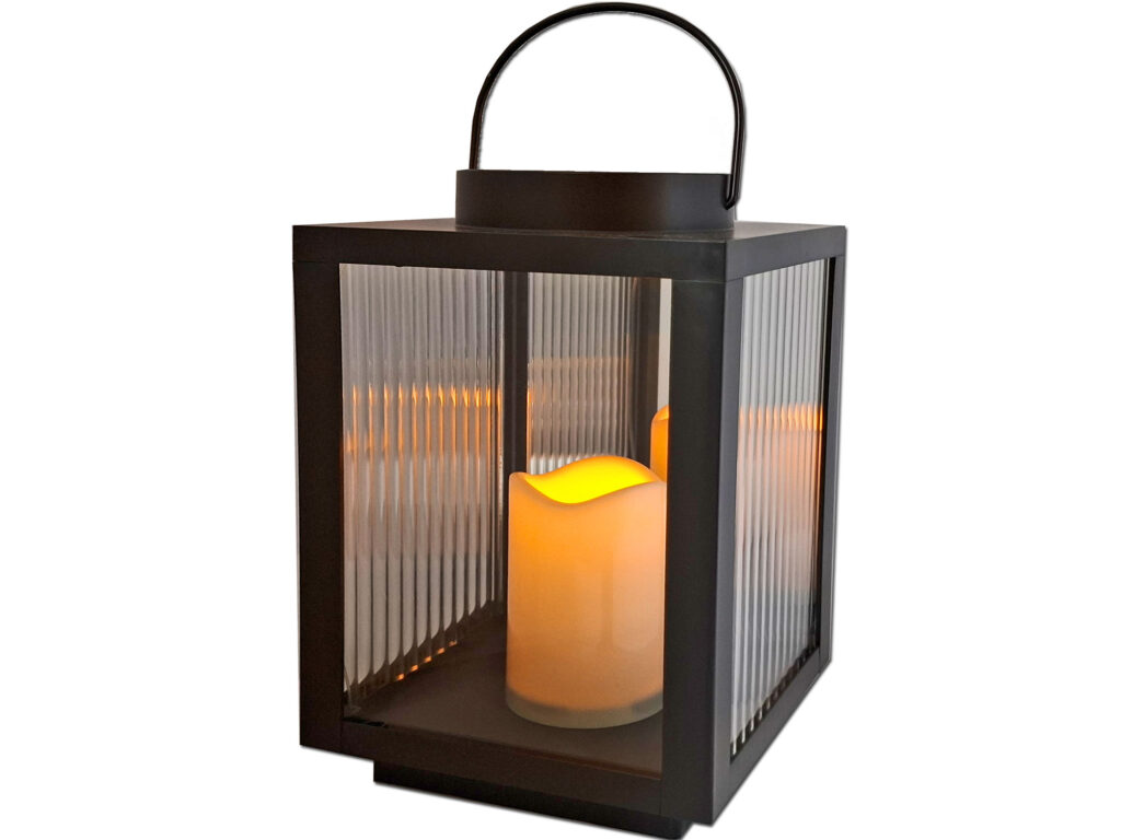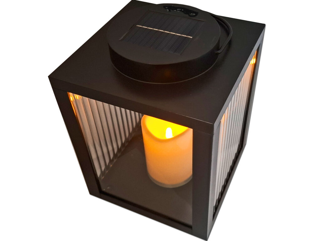 - Świeca wewnątrz latarni zasilana energią słoneczną z panela solarnego