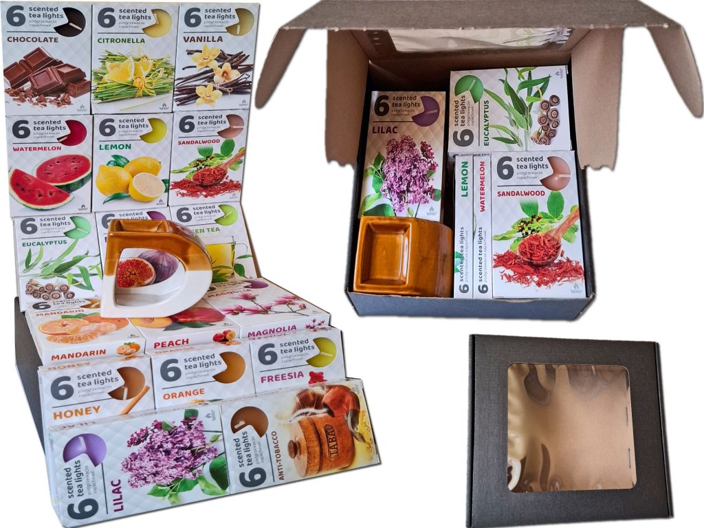 Zestaw podgrzewacze zapachowe 17 szt+kominek ceramiczny 1 szt+kartonik prezentowy