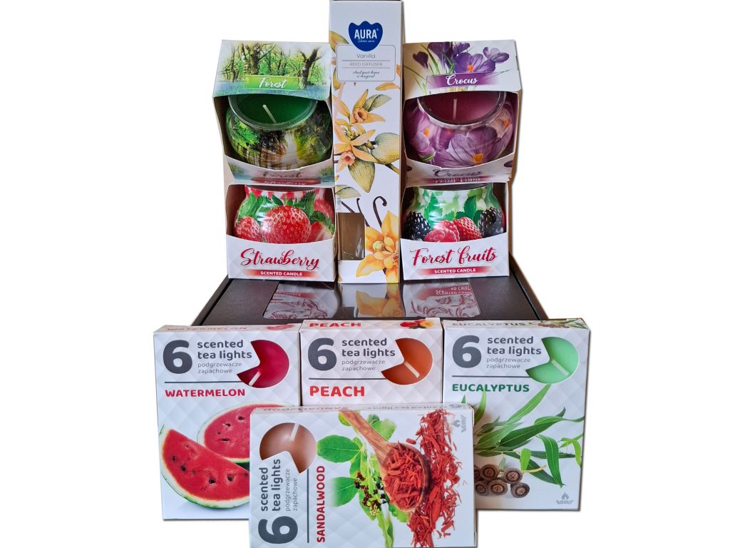 Zestaw świec zapachowych 4 szt+podgrzewacze zapachowe 4 szt+dyfuzor zapachowy 1 szt+kartonik prezentowy