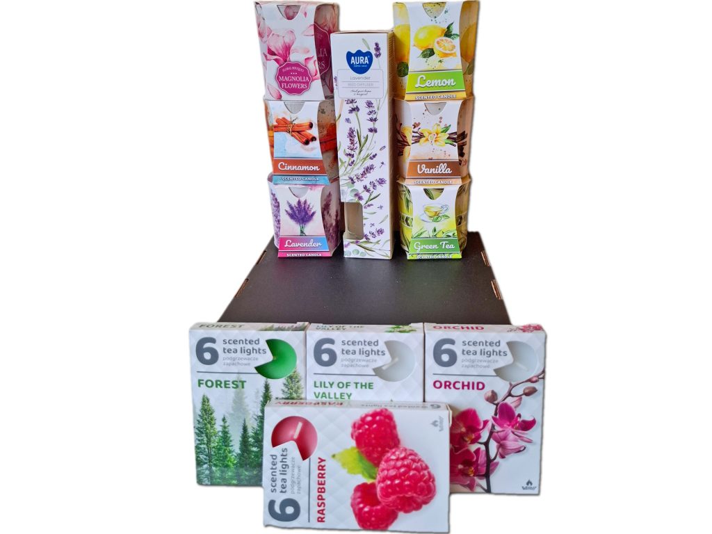 Zestaw świec zapachowych 6 szt+podgrzewacze zapachowe 4 szt+dyfuzor zapachowy 1 szt+kartonik prezentowy