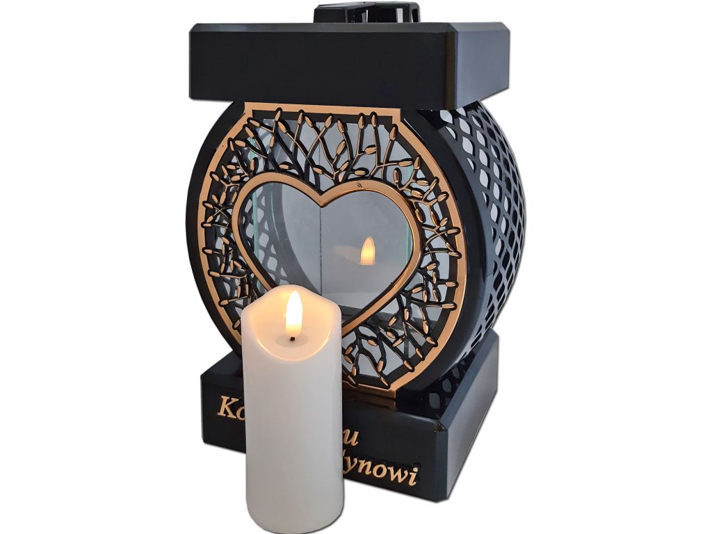 Znicz SYN Koło RTN Serce rama złoto+świeca led biała