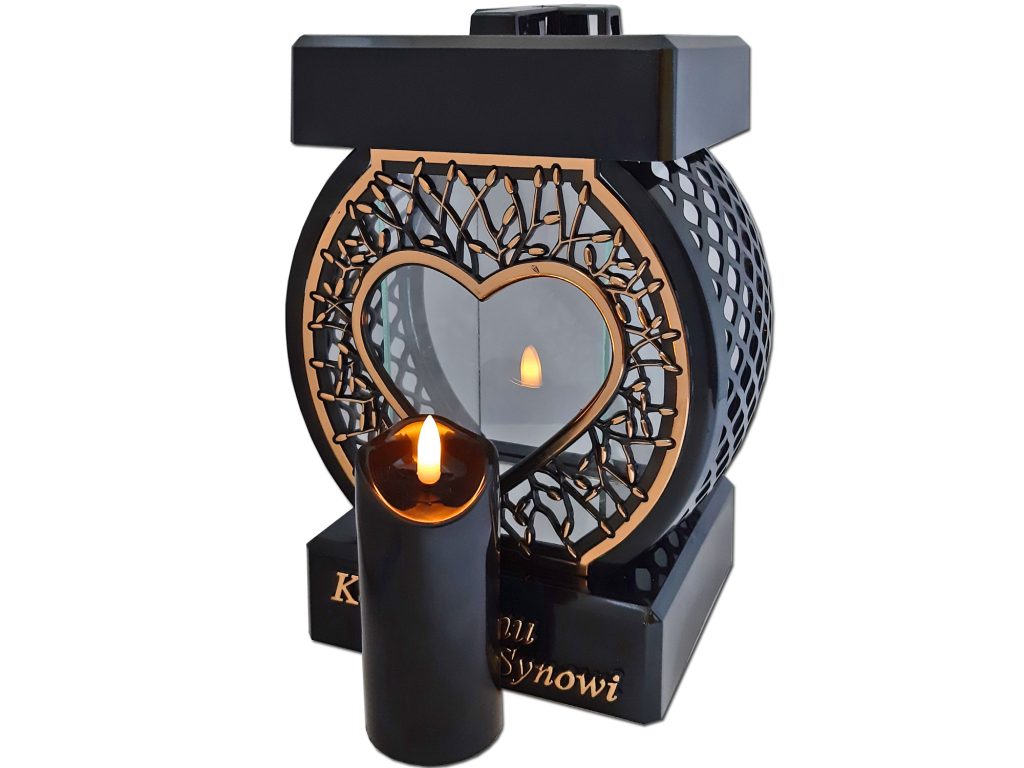 Znicz SYN Koło RTN Serce rama złoto+świeca led czarna
