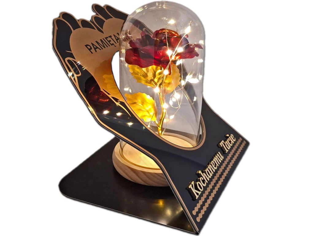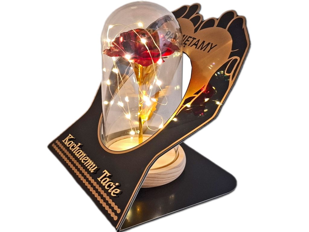 TATA znicz dłonie róża czerwona + lampki led z bateriami