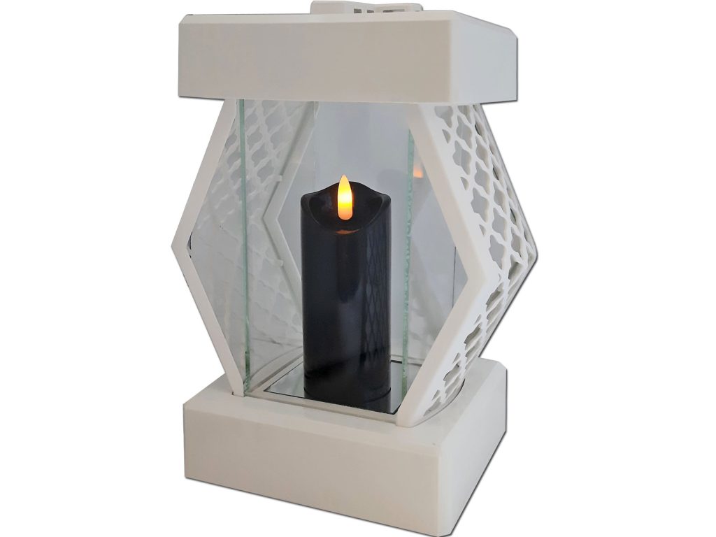 Znicz DMT KARO biały gładki+świeca led czarna