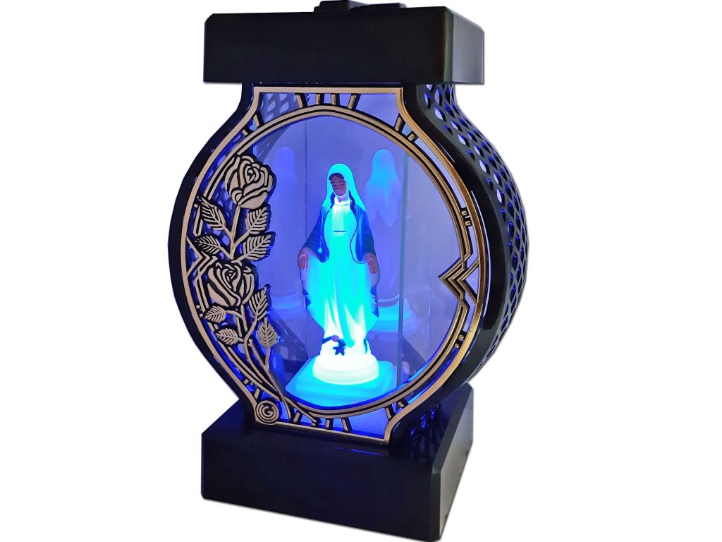 Znicz Koło RTN duże czarne rama róża złoto+figurka led