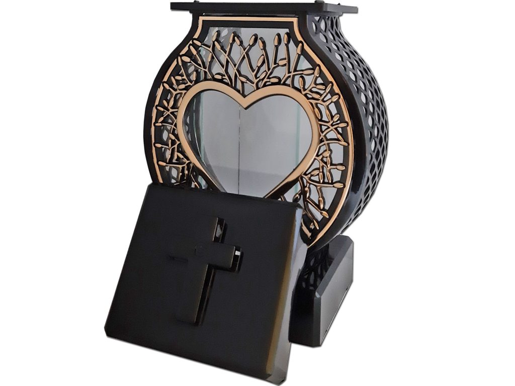 Znicz Koło RTN duże czarne rama serce złoto