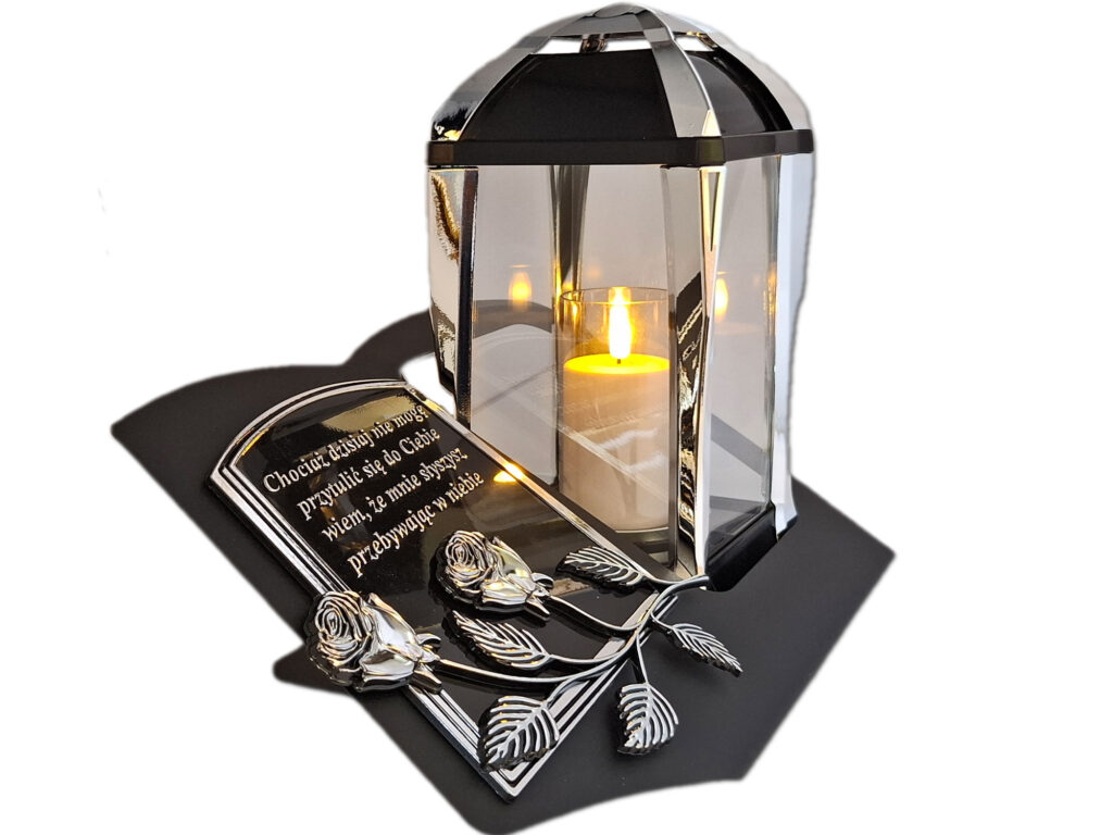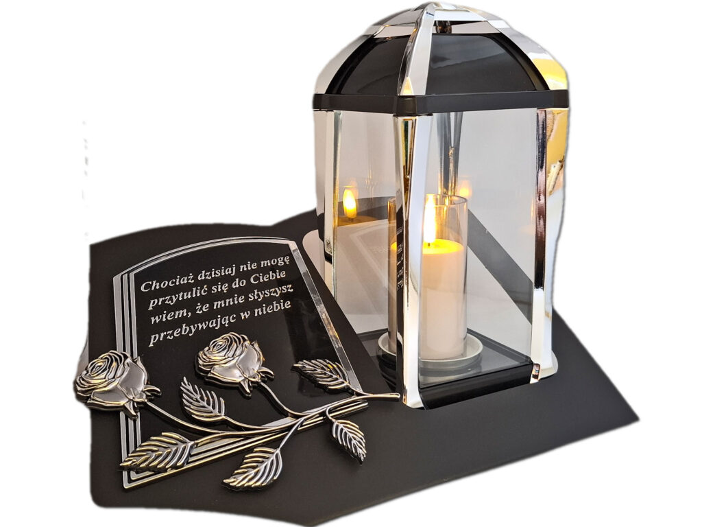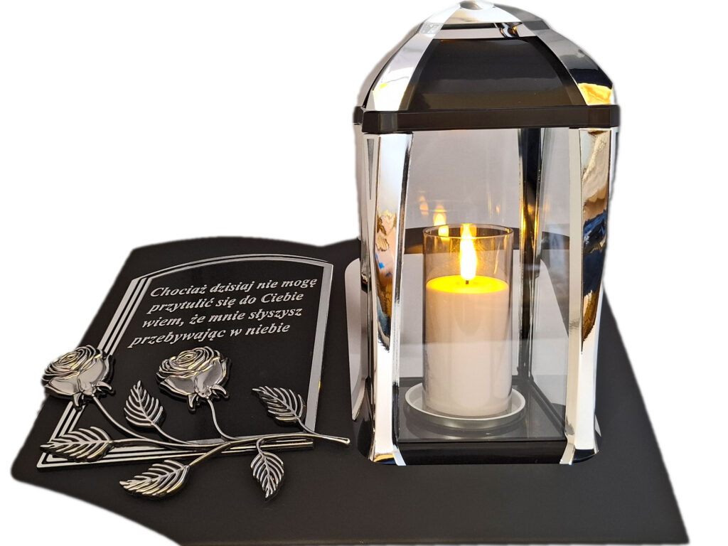 ZNICZ LAMPION NA GRÓB KPL SREBRO SKOS SENTENCJA+ ŚWIECA