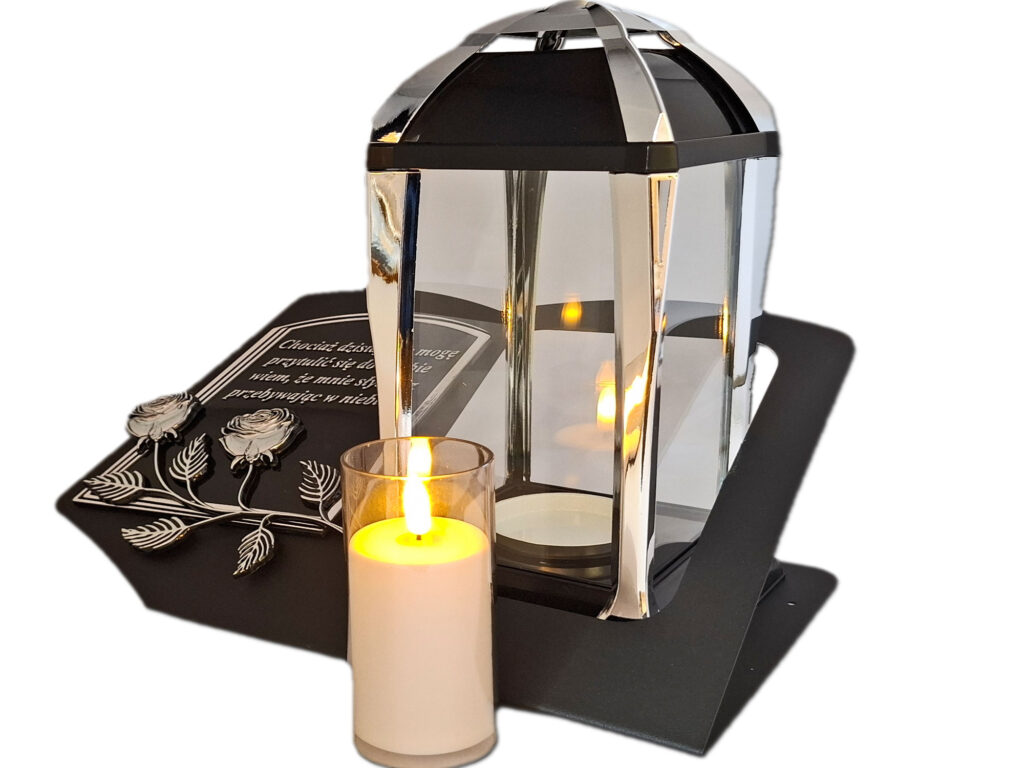• kolor znicza: szyby przezroczyste,pokrywa, podstawa i obudowa(czarna z dodatkami srebrnego koloru)