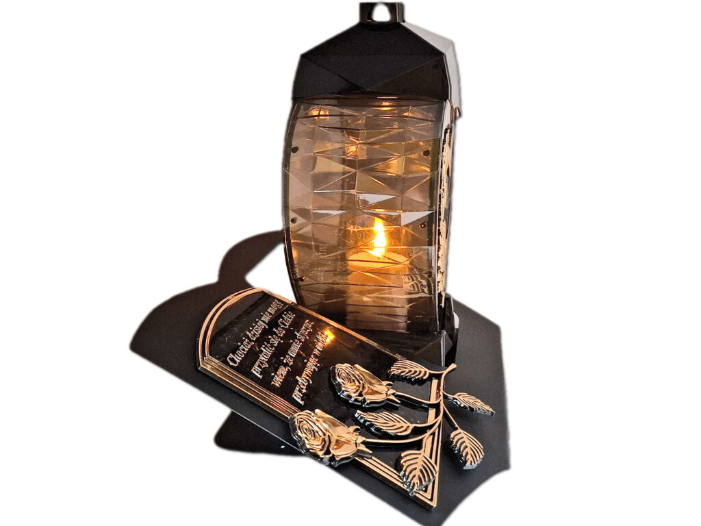 • kolor znicza: szyby przezroczyste,pokrywa, podstawa i obudowa(czarna)
