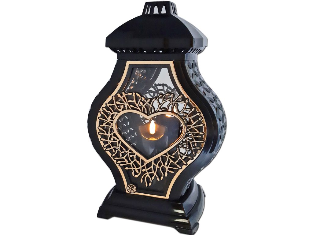 ZNICZ LAMPION NA GRÓB WAZA DUŻA RTN RAMA SERCE CZARNA+ŚWIECA LED CZARNA