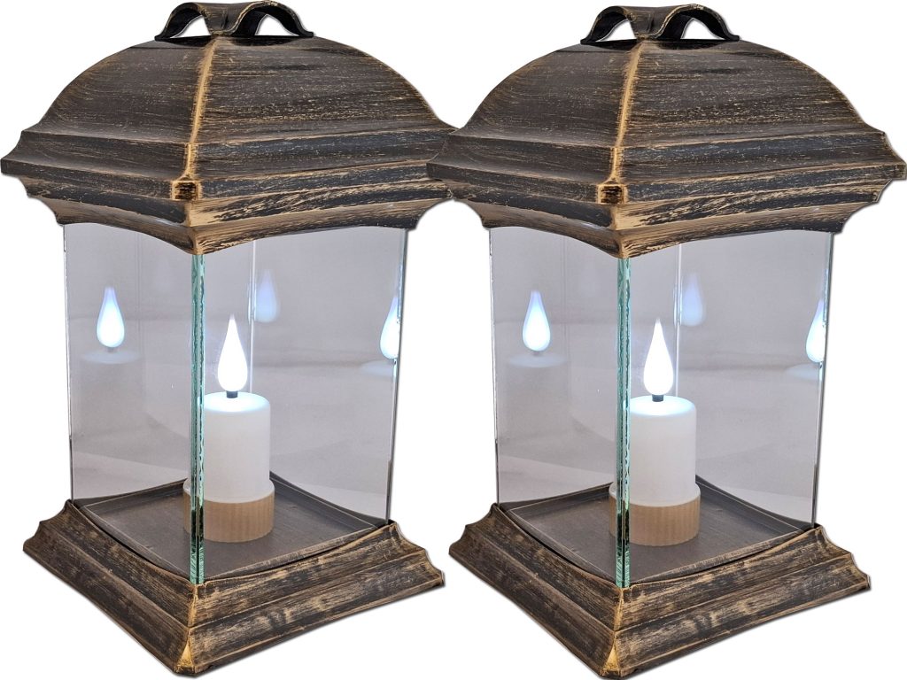ZNICZ LAMPION NA GRÓB ZESTAW 2 SZTUKI KATEDRA SZKŁO GŁADKA ZŁOTO +WKŁADY