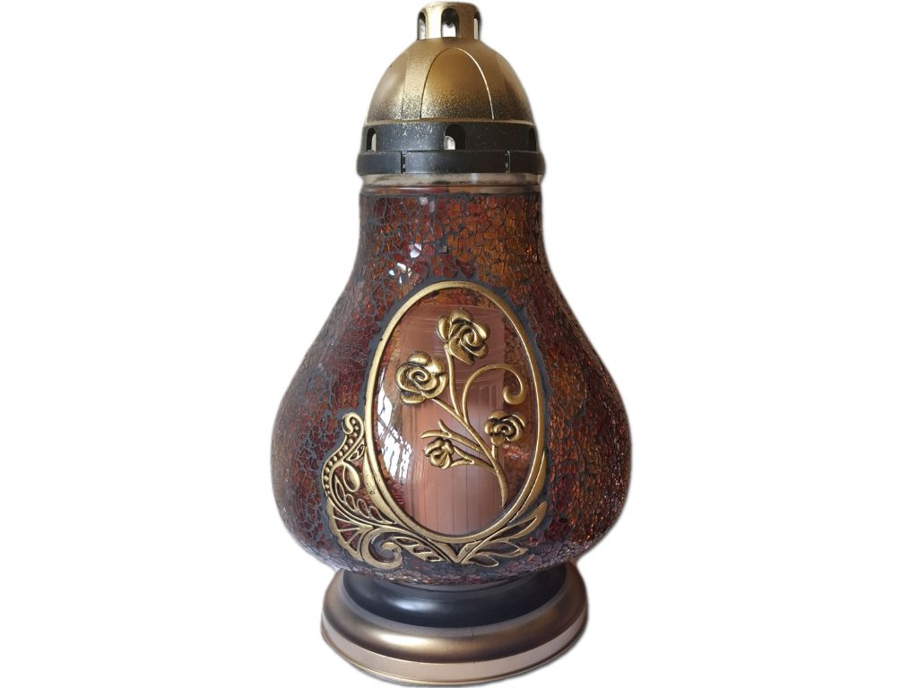 - kolor znicza: szkło(brązowe),pokrywa i podstawa(złoto)