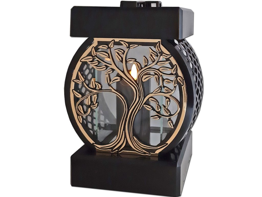 ZNICZ ZNICZE LAMPION NA GRÓB KOŁO RTN DRZEWO RAMA ZŁOTO+ŚWIECA LED CZARNA