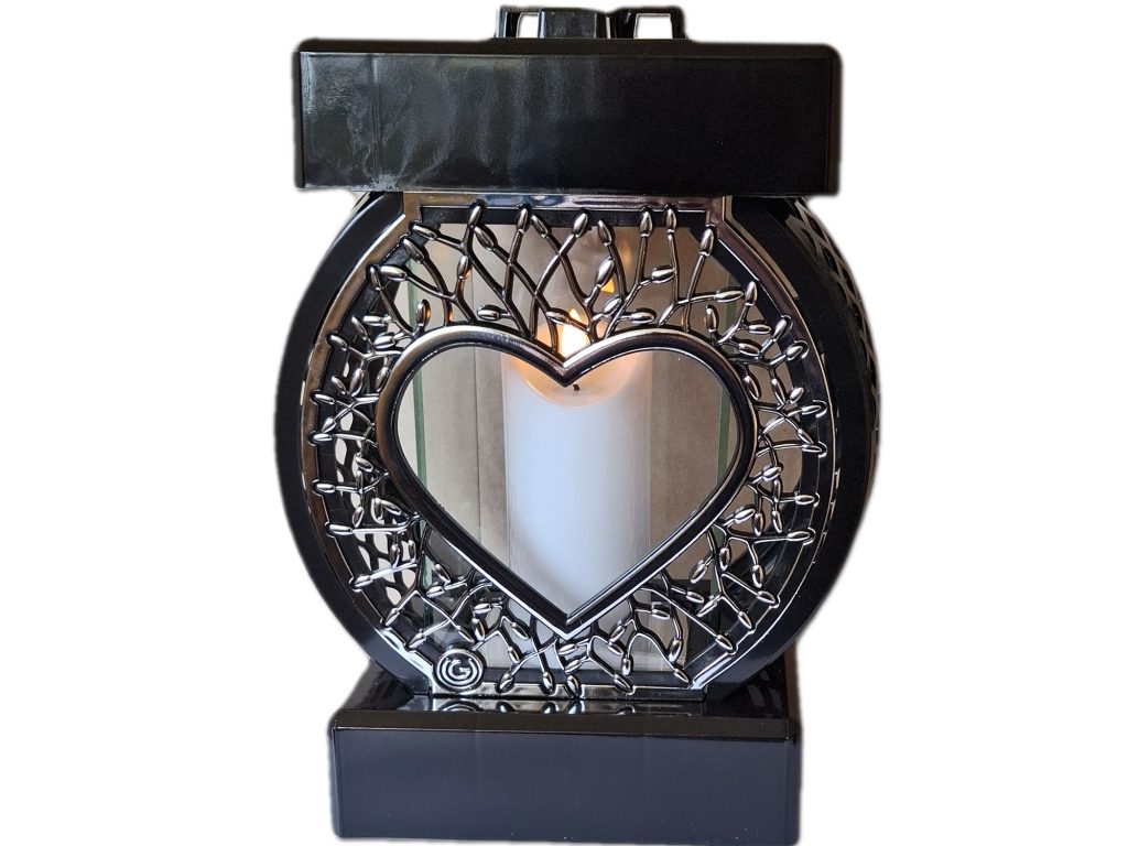 Znicz Koło RTN Serce rama srebro+świeca led biała