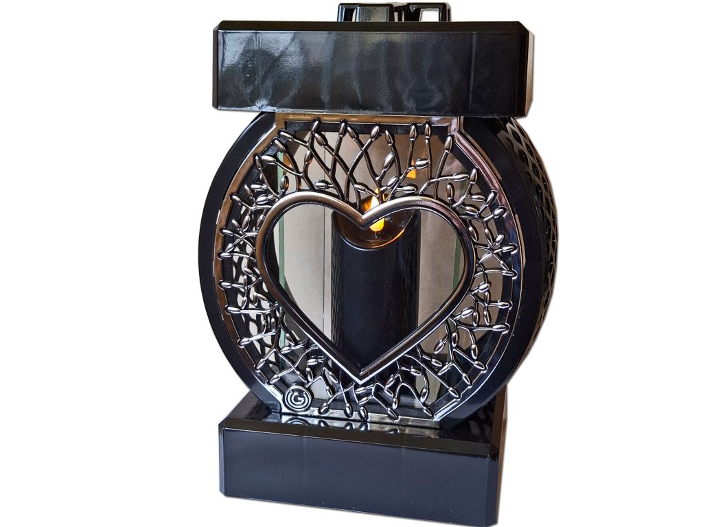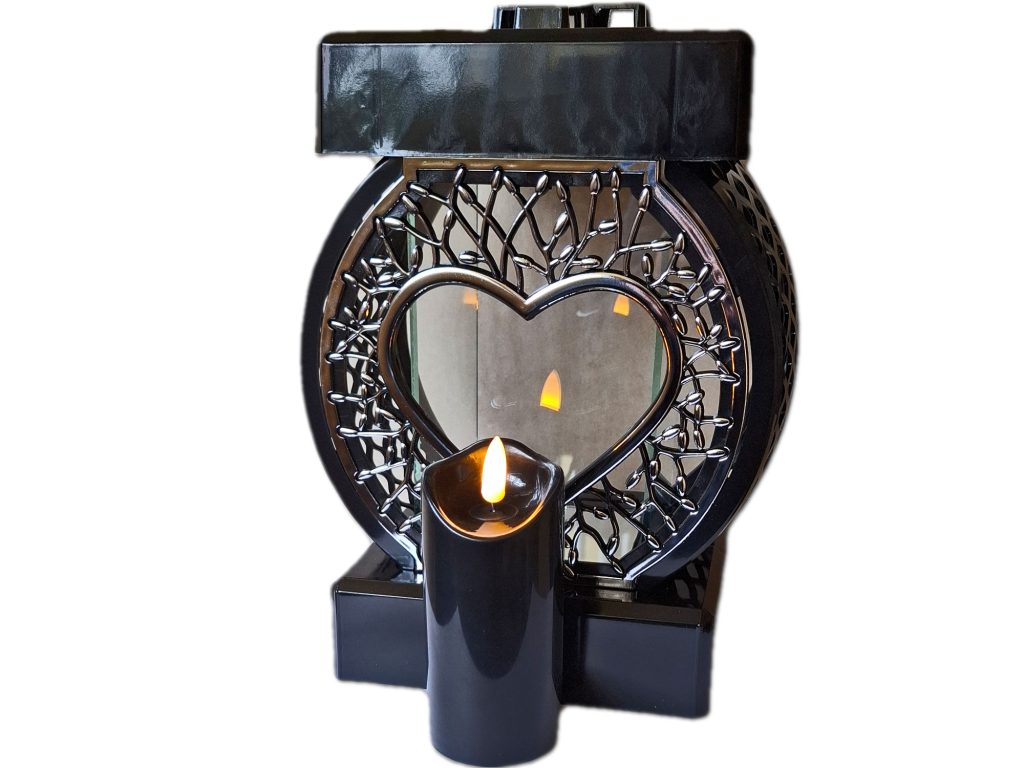 Znicz Koło RTN Serce rama srebro+świeca led czarna