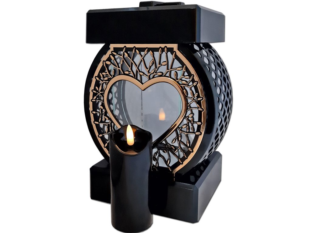 Znicz Koło RTN Serce rama złoto+świeca led czarna