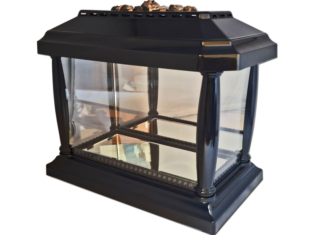 • kolor znicza: szyby (przezroczyste)tylna szyba lustro,pokrywa i podstawa(czarna)