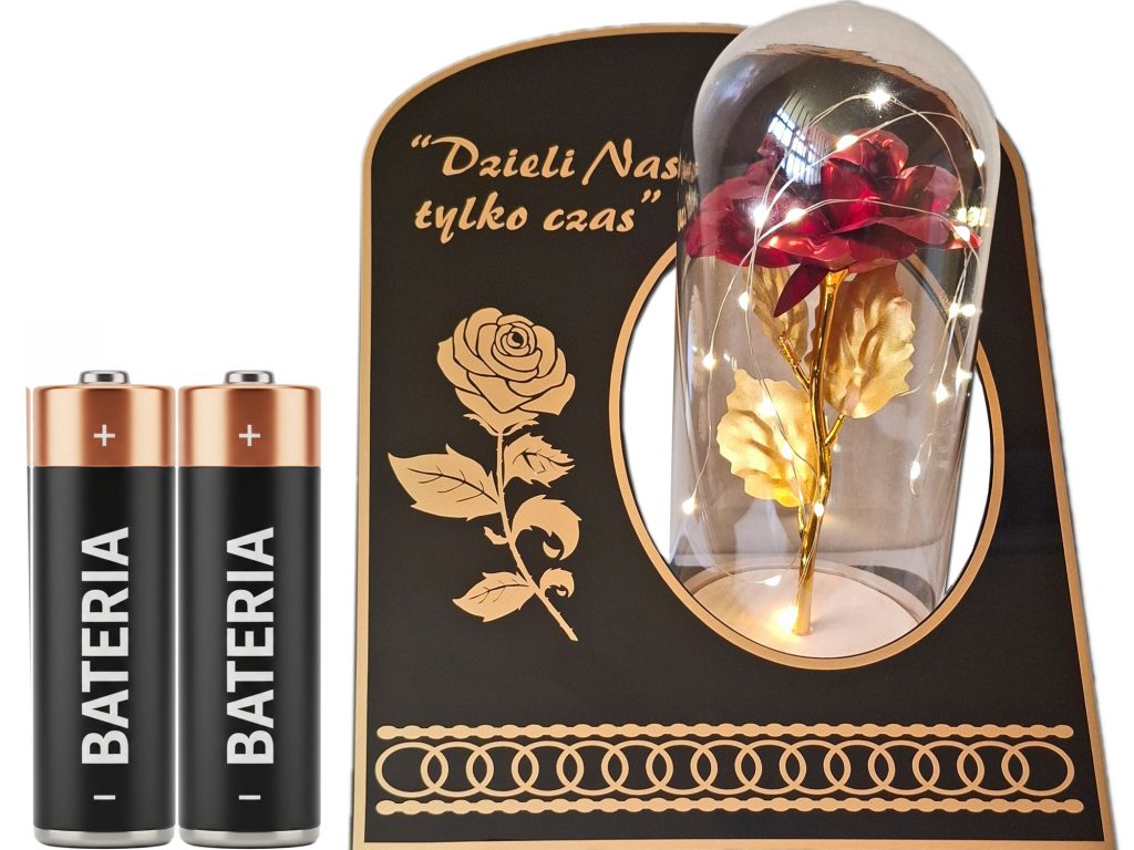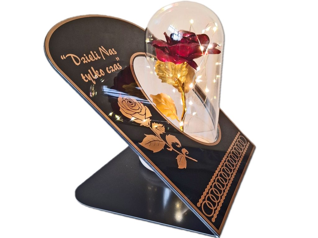 CENA DOTYCZY ZESTAWU: ŚWIECĄCA RÓŻA NA DREWNIANEJ PODSTAWCE+AKRYLOWA PODSTAWA +BATERIE