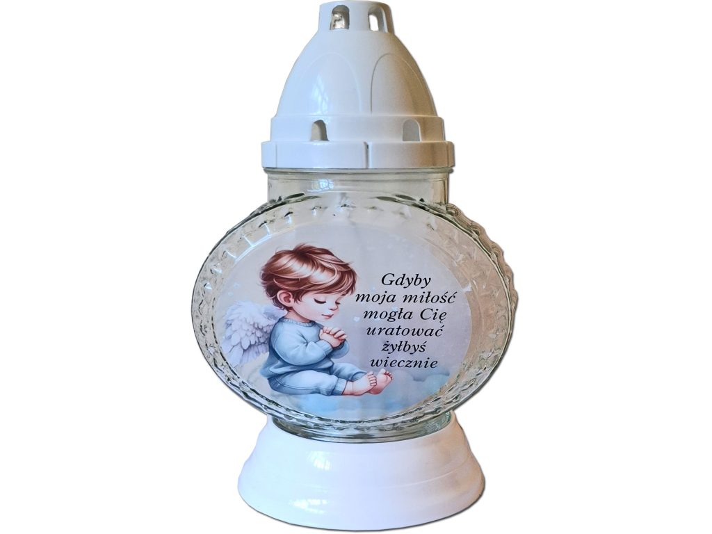 - przód znicz z naklejoną sentencją dla chłopca