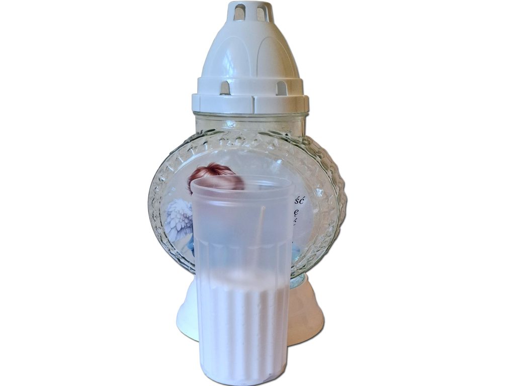 - kolor znicza: szkło(przezroczyste),podstawa i pokrywa(biała)